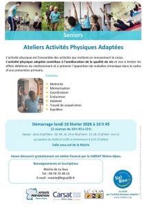 Séniors: Ateliers activités physiques adaptées Posté le 19 janvier 2026 par stephane Dès le lundi 16 février pour 12 séances